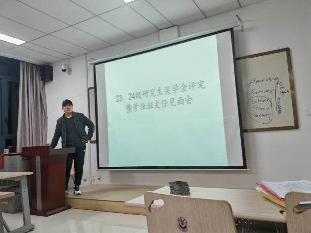 23、24级中国史班于2024年11月27日19点在学院509教室举行了2024年度学业奖学金评定暨学业班主任见面会。辅导员李生策老师、24级学业班主任白中阳老师以及23级、24级全体研究生同学参加。