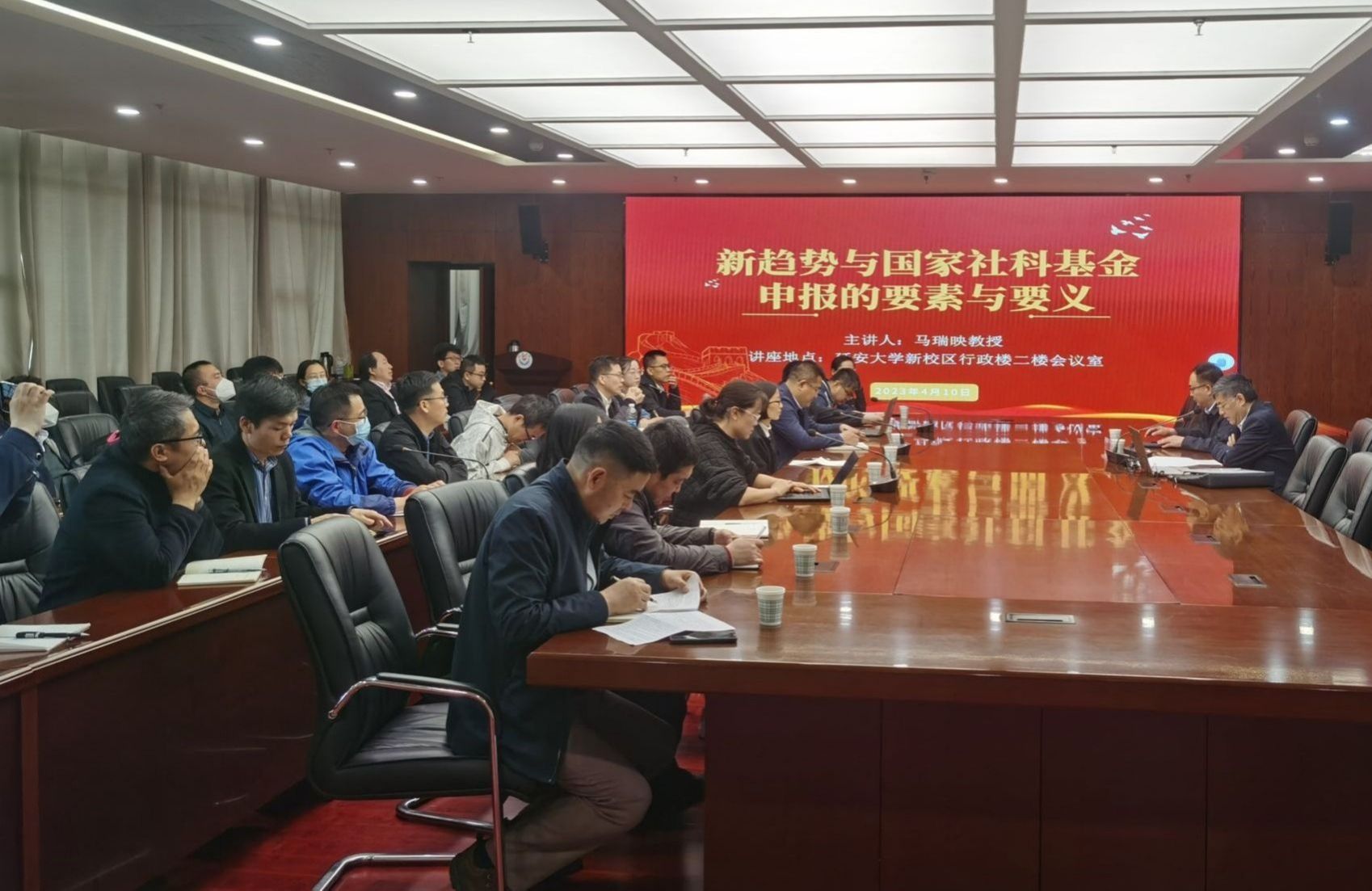 2023年4月10日下午,我校邀请陕西师范大学国家安全教育研究院、战略与管理研究院院长马瑞映教授作了题为《新趋势与国家社科基金申报的要素与要义》的国家社科基金申报辅导报告,来自全校各文科学院的近百位教师聆听了此次报告,报告由科研处副处长刘宏宇主持。