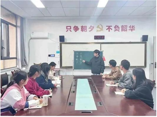 随后,由书法部负责人李叶凡同学带领大家学习粉笔字书法。他详细的介绍了书法的基本写法和其蕴含的内在意义,并现场为大家进行了示范。“只争朝夕,不负韶华 ”字里行间都体现出了91视频