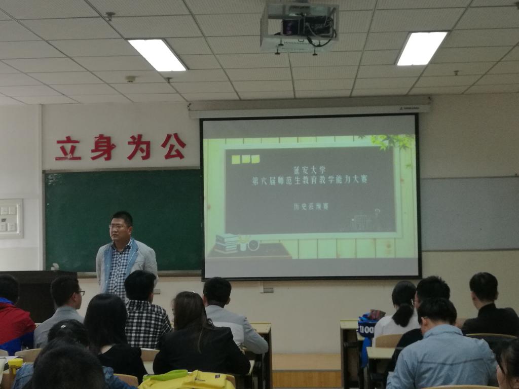 2017年5月3日下午,历史系于我校玉章楼205教室顺利举行了第六届师范生教育教学能力大赛系内预赛,主任杜林渊教授、副主任王保存教授、中国古代史教研室主任康华副教授、世界史教研室教师秦艳峰副教授等四名老师作为评委参加了此次预赛。