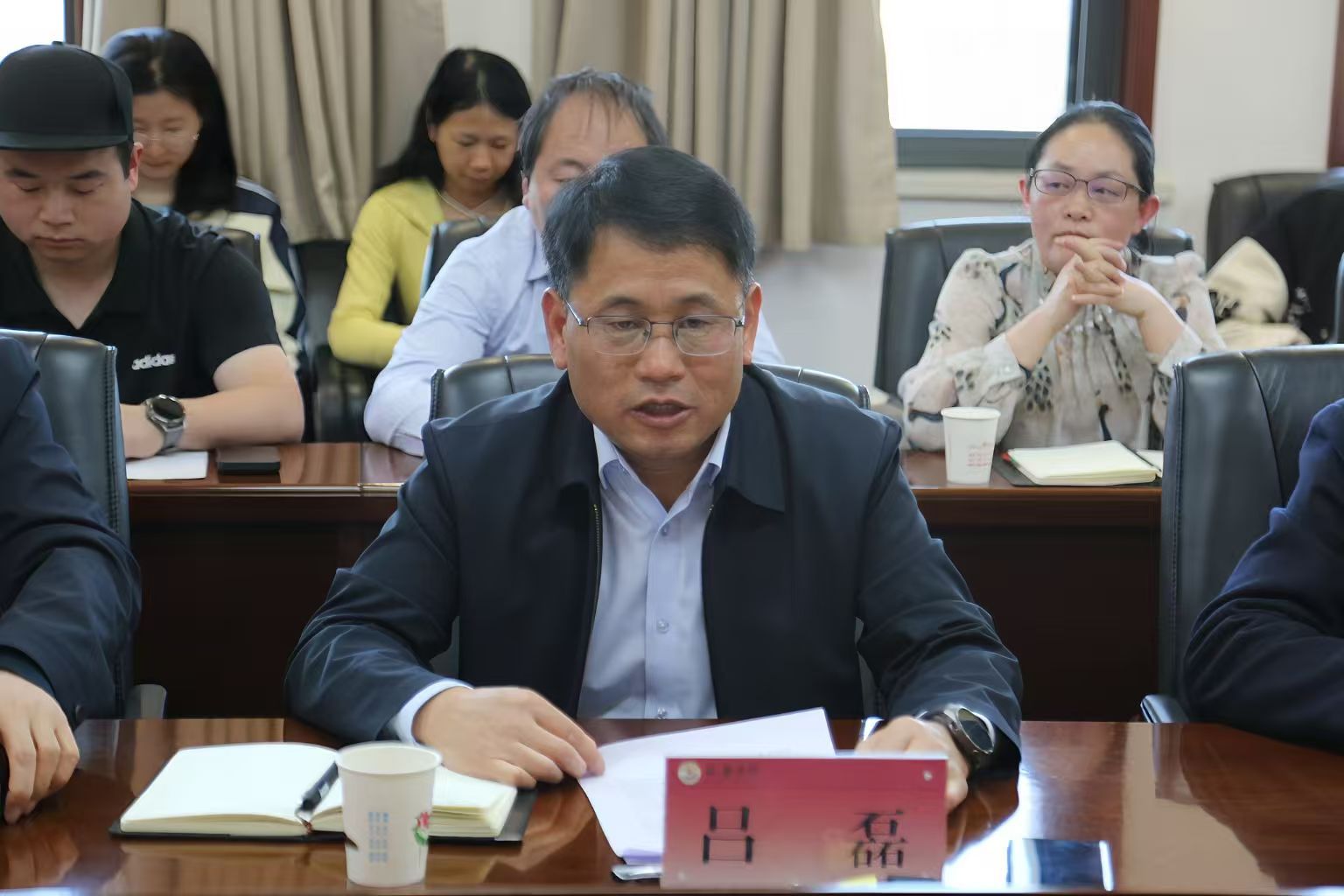 吕磊首先对周群社长与陆航站长的到来表示欢迎。他在致辞中介绍了学校办学历史、办学特色、学科建设、哲学社会科学研究等方面的情况。他指出,《历史研究》和《中国社会科学报》作为我国历史学领域的旗帜性期刊和社科界思想传播的主阵地,始终引领学术前沿、服务国家战略。此次座谈会的举办,既是学术传承的生动实践,更是校社协同创新的起点。衷心希望以此次交流为契机,建立常态化校社合作机制,在人才培养、学术研究、智库建设、文化传播等领域开展全方位合作。