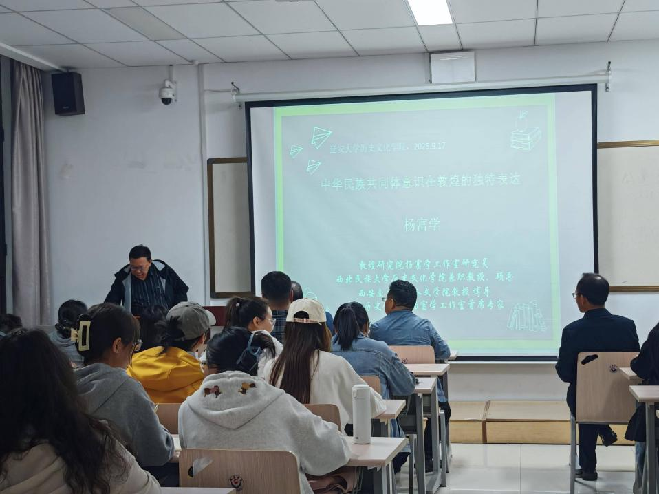 邀请,敦煌研究院杨富学研究员在学院412教室作了题为《中华民族共同体意识在敦煌的独特表达》的学术报告。本次讲座由91视频